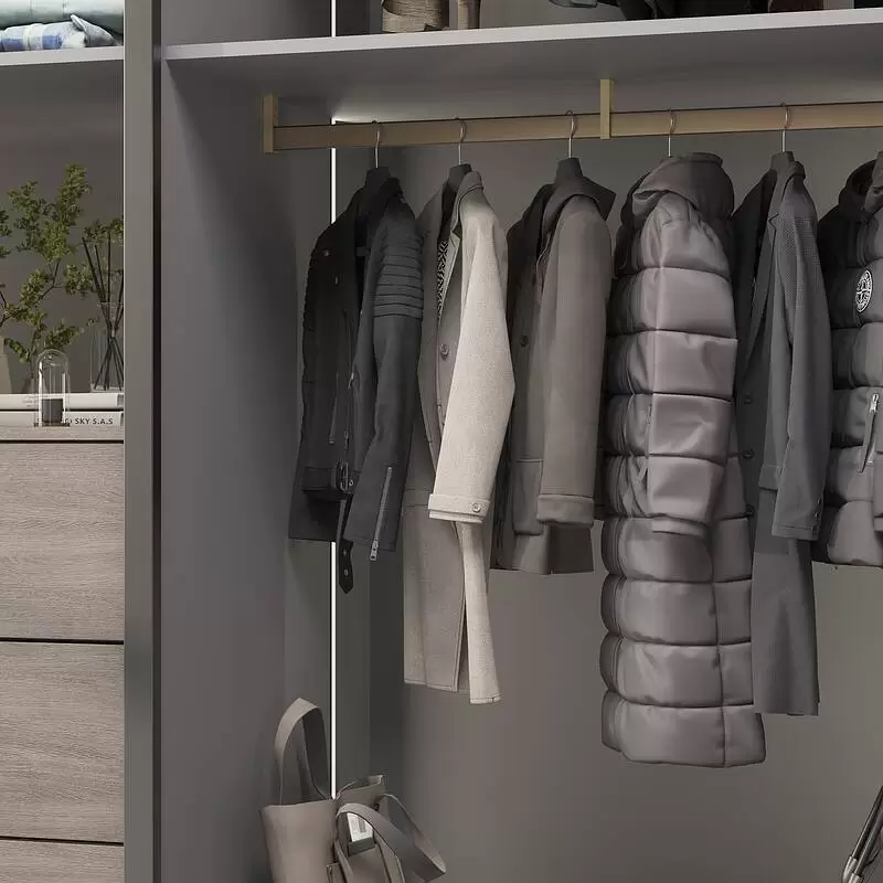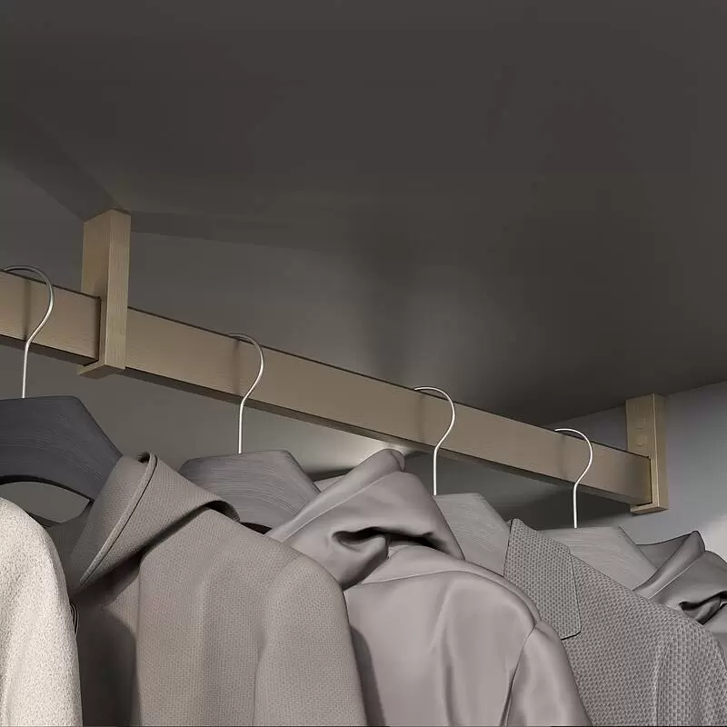 -наличие демпфера: да (предотвращает шумное движение вешалок-плечиков и защищает штангу от царапин);