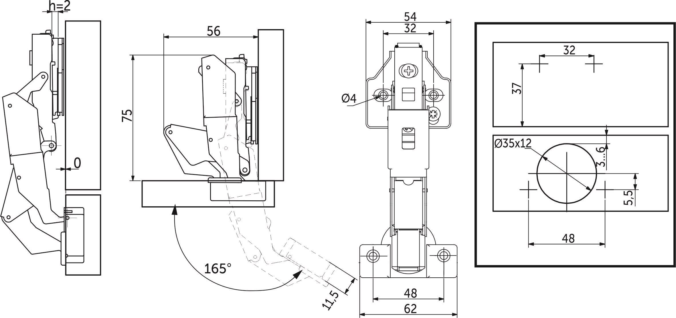 Петля 165° накладная с доводчиком 48мм h2 clip-on PRIME by AKS 3D (саморезы, заглушки) 0-е вхождение (упак. = 2 шт.)