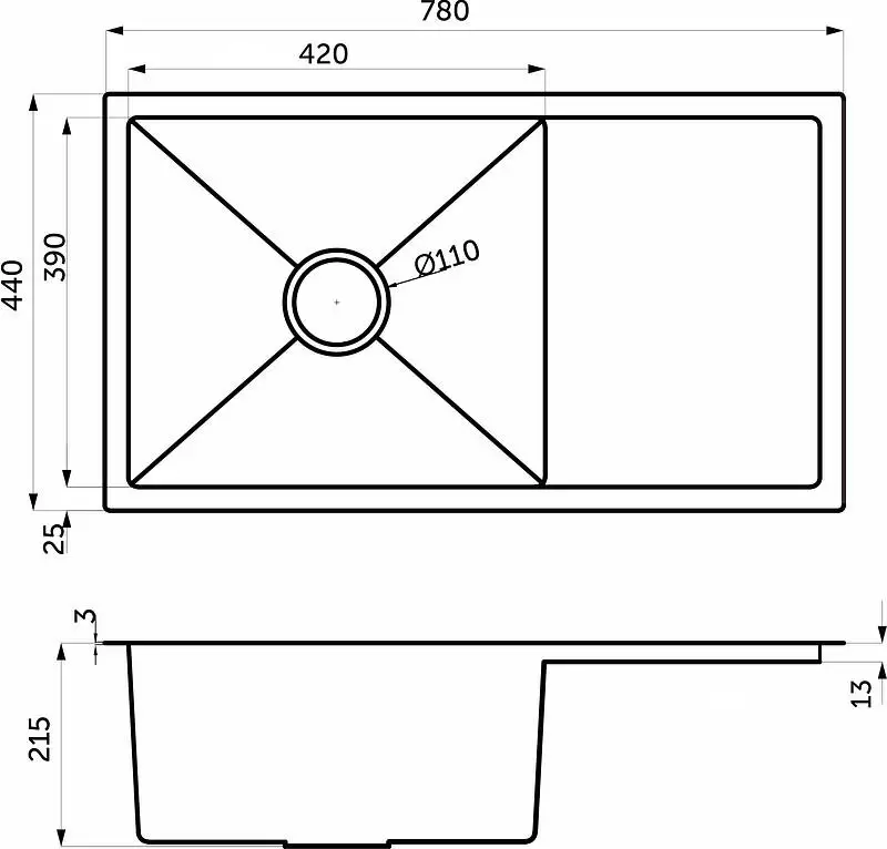 Материал: нержавеющая сталь, толщина стали до 3,2мм. Способ установки: универсальная. Вариант поверхности - сатин никель. Комплект: мойка, крепления, сифон, дозатор для мыла. Форма мойки: прямоугольная, конструкция мойки: одночашевая.