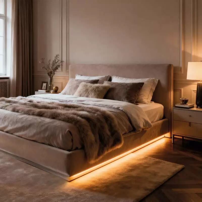 Комплект светодиодной подсветки для кровати, мощность 20W, длина 2 метра, нейтральный белый (4000K), цвет черный.