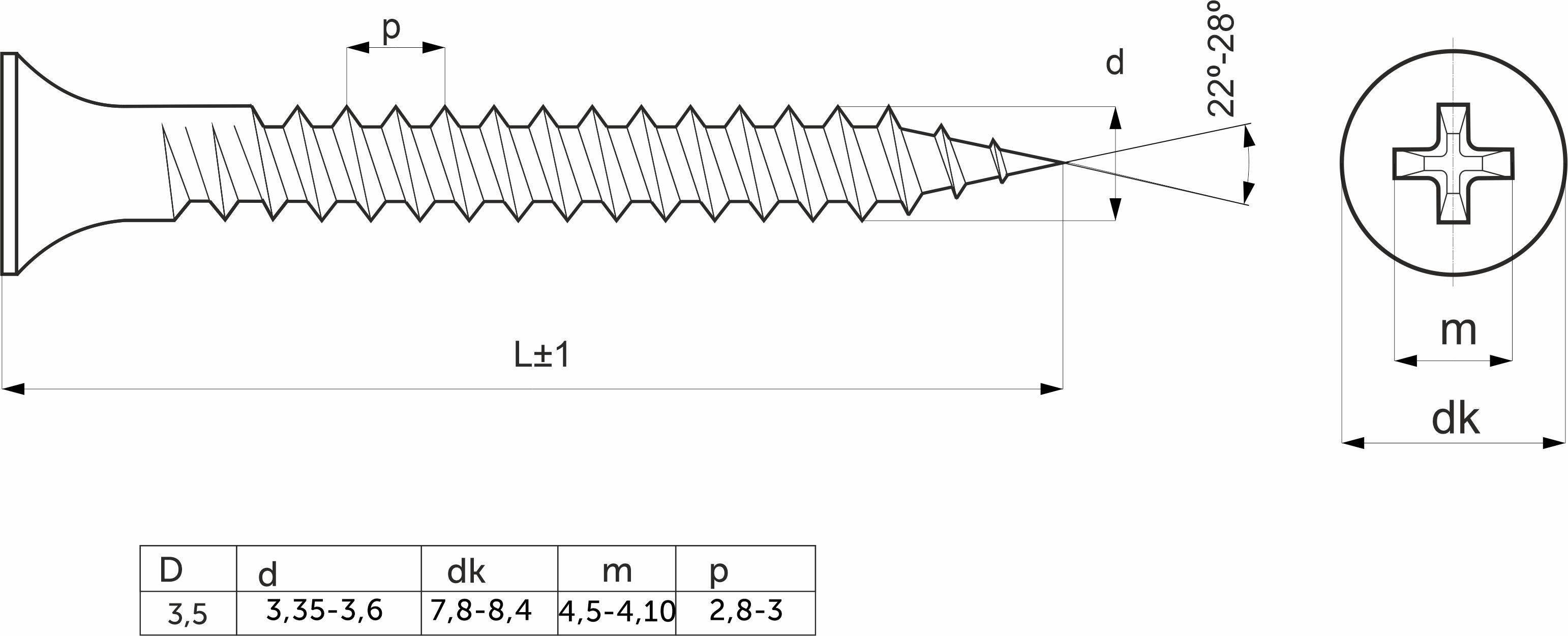 Саморезы предназначены для крепления гипсокартонных плит к металлическим профилям, имеют частый шаг резьбы и шлиц PH. Материал покрытия стальных стержней саморезов для гипсокартона - фосфатное (черные).