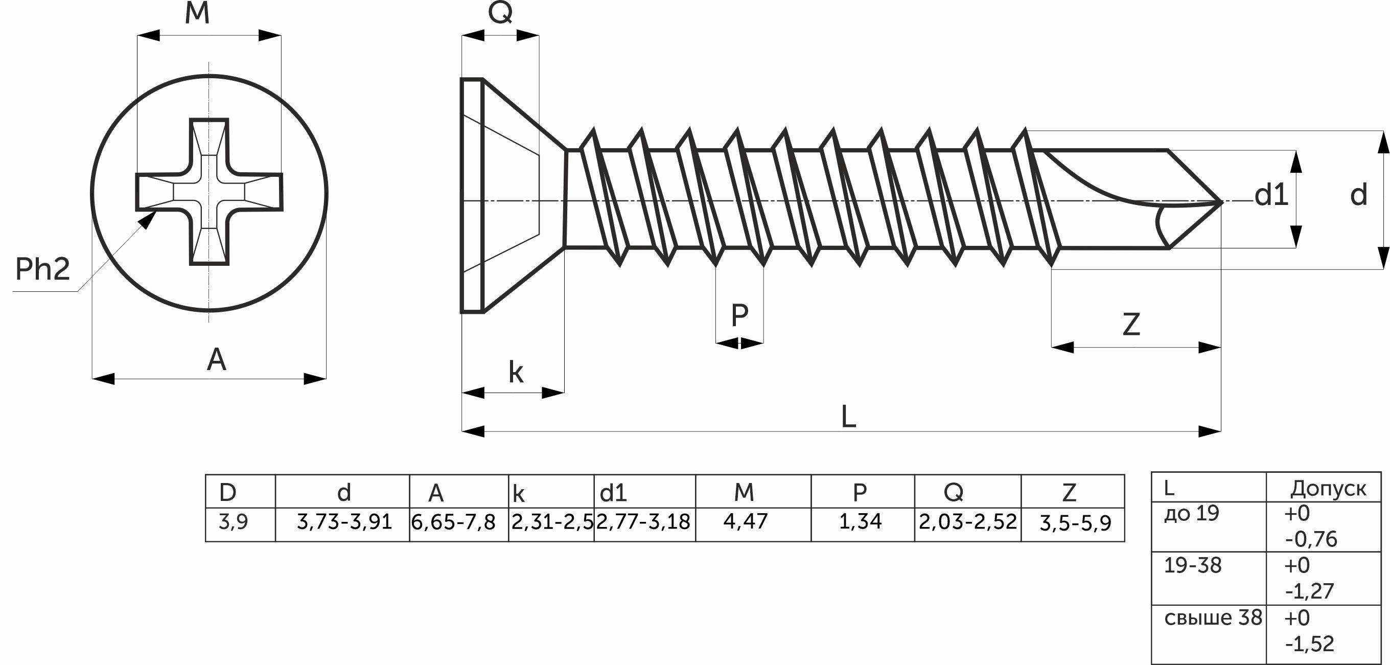 Материал: сталь. Головка коническая с насечкой для изделий из ПВХ, частая резьба, наконечник сверло. Шлиц - PH.Покрытие - белый цинк.