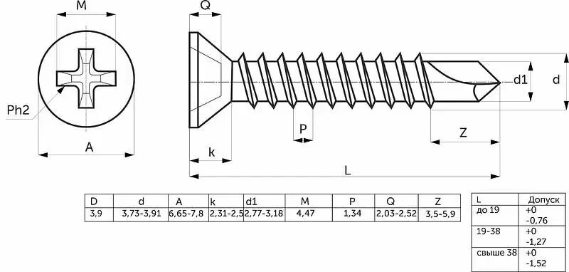 Материал: сталь. Головка коническая с насечкой для изделий из ПВХ, частая резьба, наконечник сверло. Шлиц - PH.Покрытие - белый цинк.