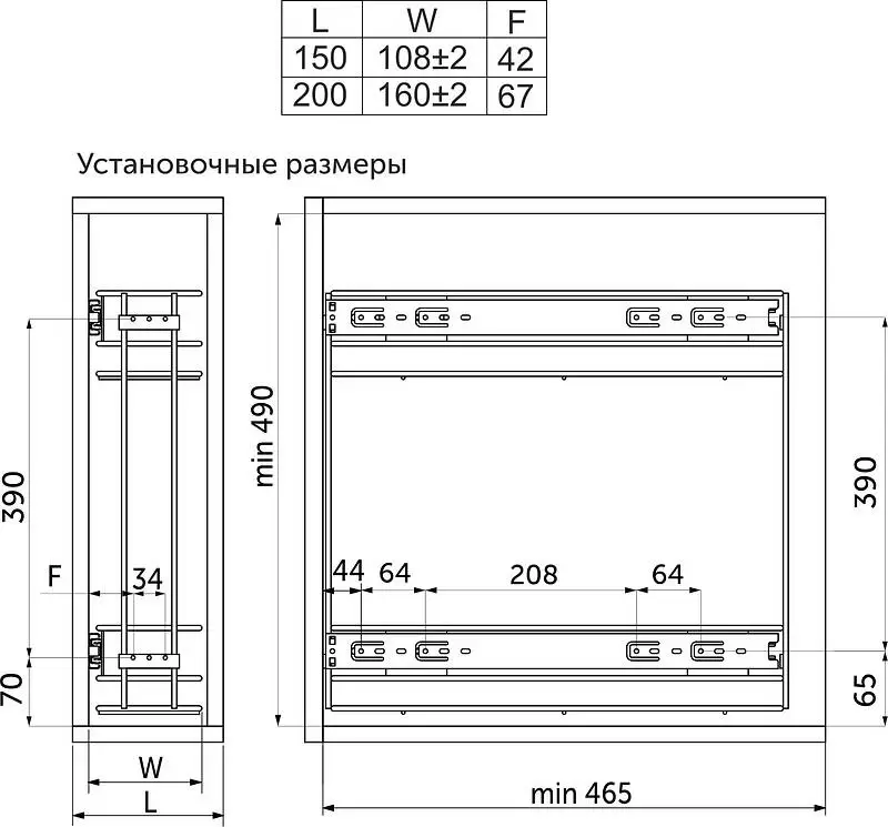 Установочные размеры: D470*W110*H490мм.