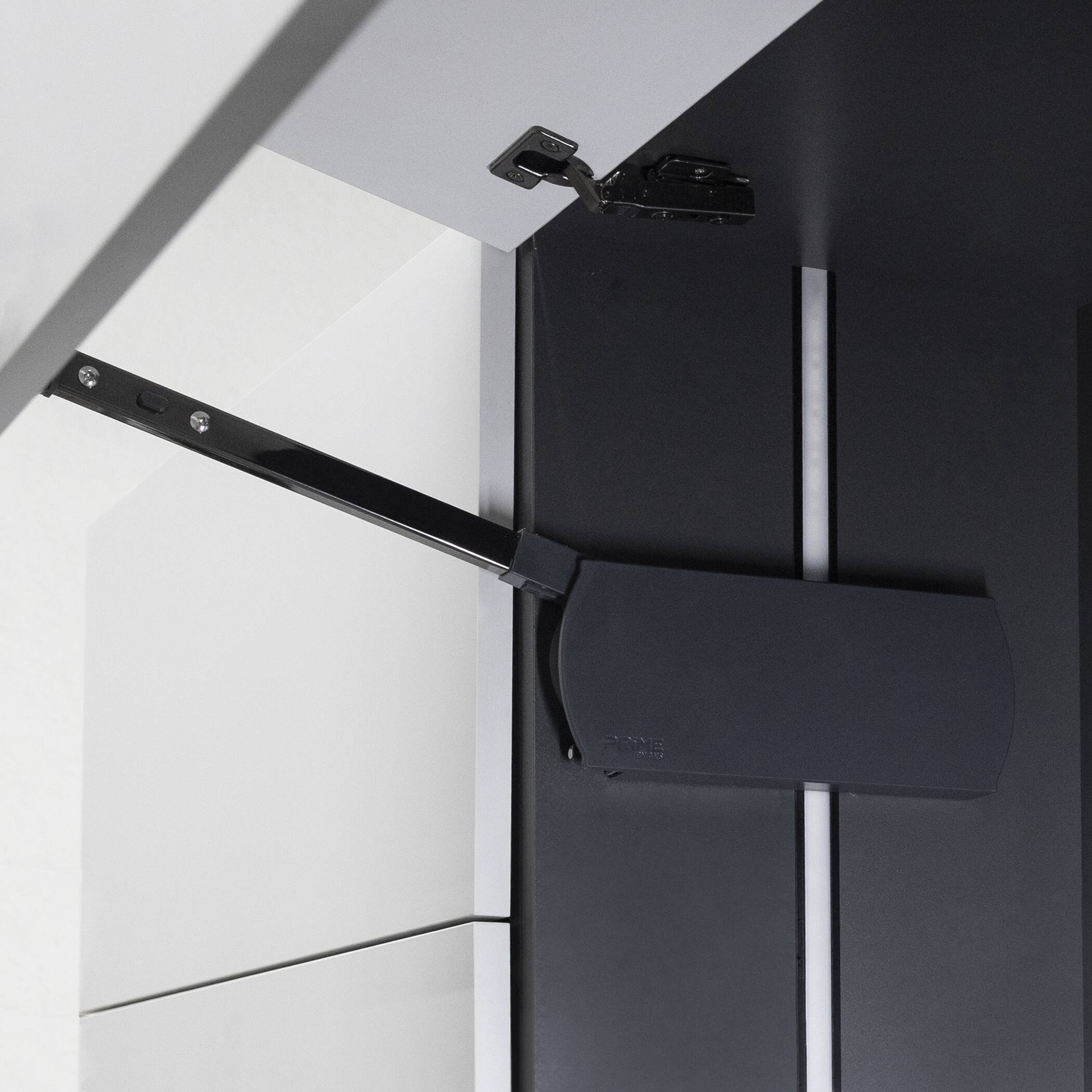 Регулировки: мощности подъемника, усилия и угла срабатывания доводчика, длины рычага, угла открывания фасада (85° и 100°).