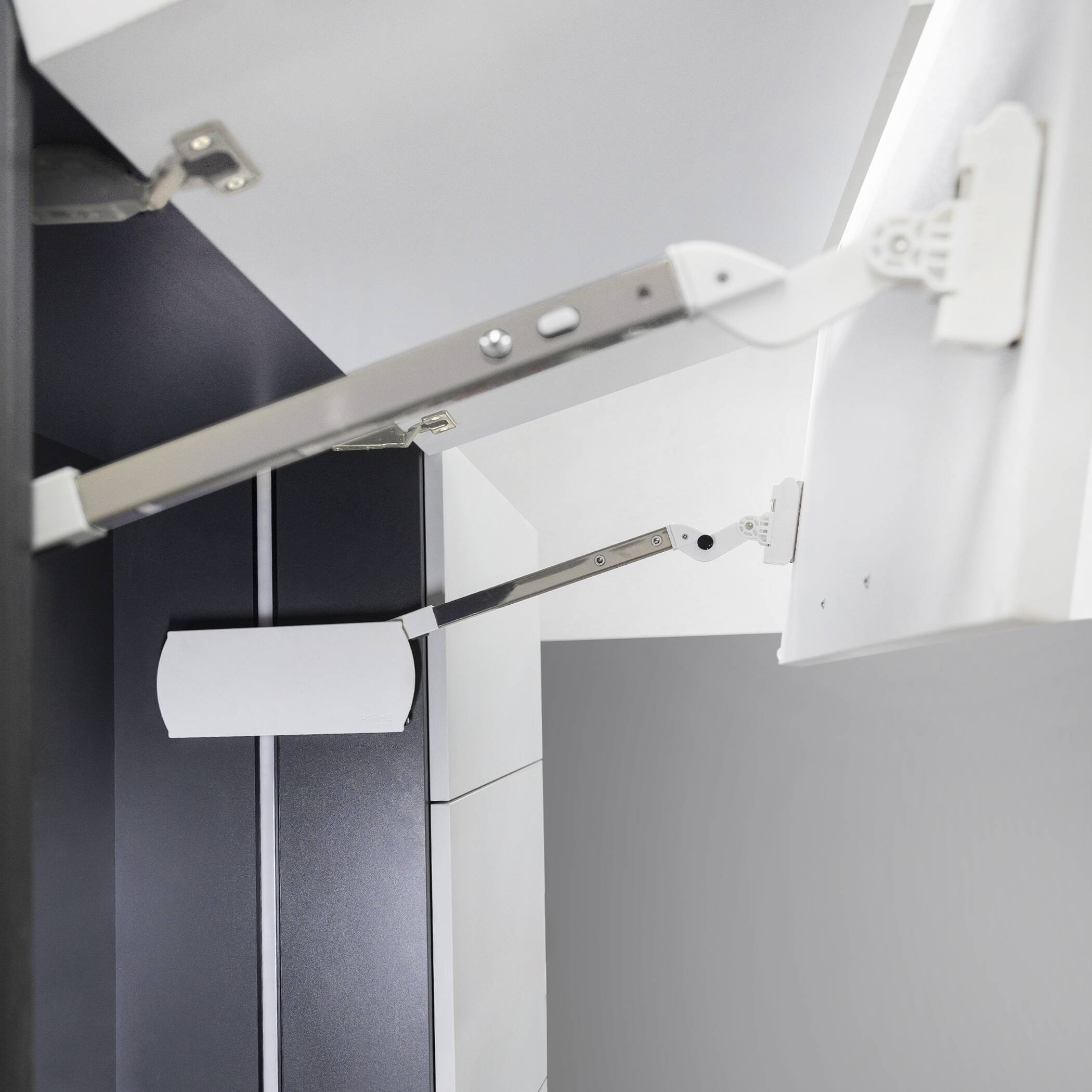 Регулировки: мощности подъемника, усилия и угла срабатывания доводчика, длины рычага, угла открывания фасада (85° и 100°).