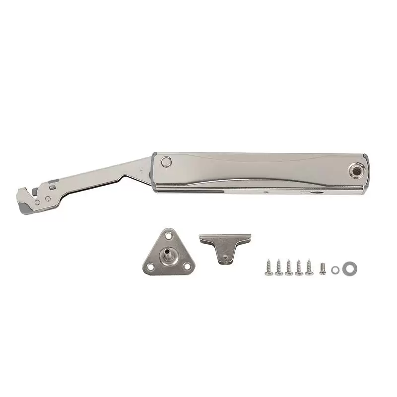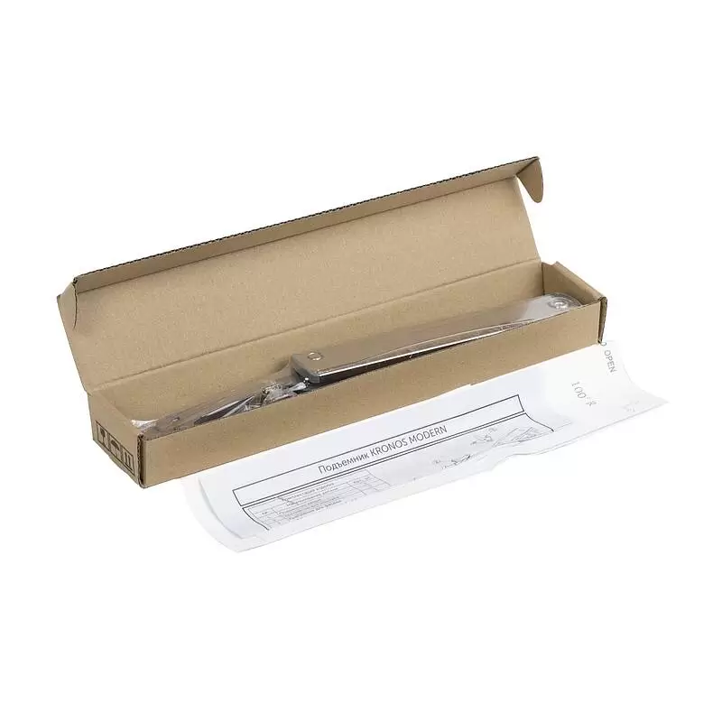 Подъемник KRONOS MODERN под механизм push-to-open предназначен для открытия фасада вверх и его фиксации в открытом положении. Он идеально подходит для сборки небольших тумб и верхних шкафов кухни, обеспечивая как удобный доступ к их содержимому, так и безопасное использование.