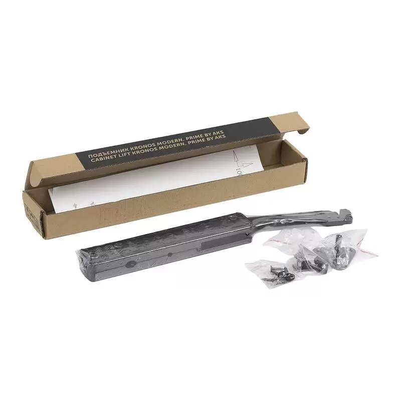 Подъемник KRONOS MODERN под механизм push-to-open предназначен для открытия фасада вверх и его фиксации в открытом положении. Он идеально подходит для сборки небольших тумб и верхних шкафов кухни, обеспечивая как удобный доступ к их содержимому, так и безопасное использование.