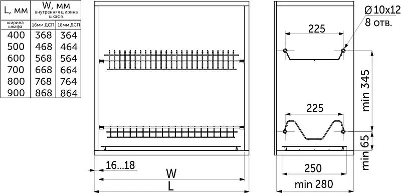 - подходит для установки в ящик как с ДСП 18 мм, так и с ДСП 16 мм,