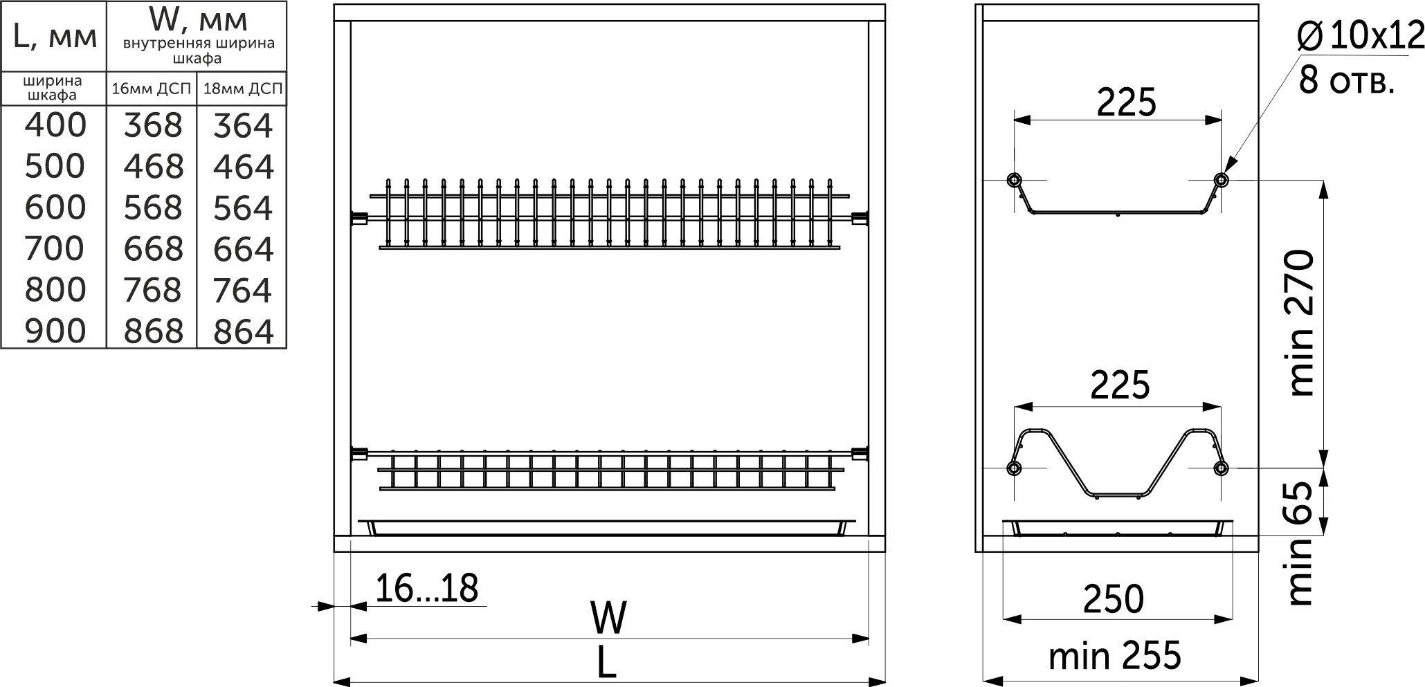 - подходит для установки в ящик как с ДСП 18 мм, так и с ДСП 16 мм,