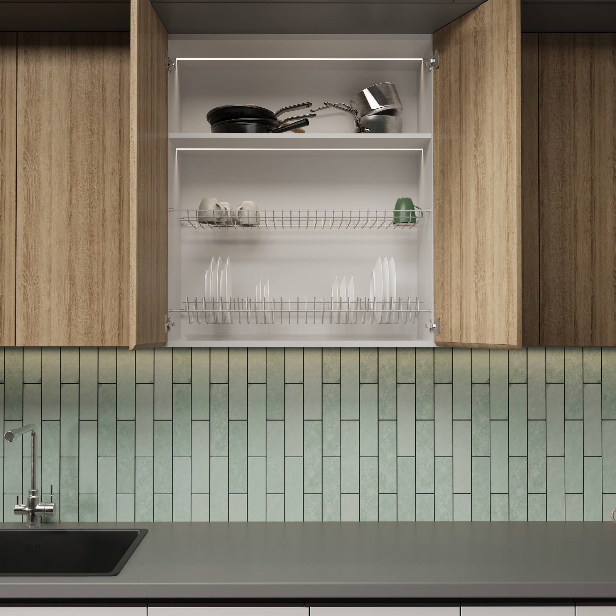 - поддон (толщина 0,7 мм) для сбора капель и защиты дня кухонного ящика от разбухания в комплекте,