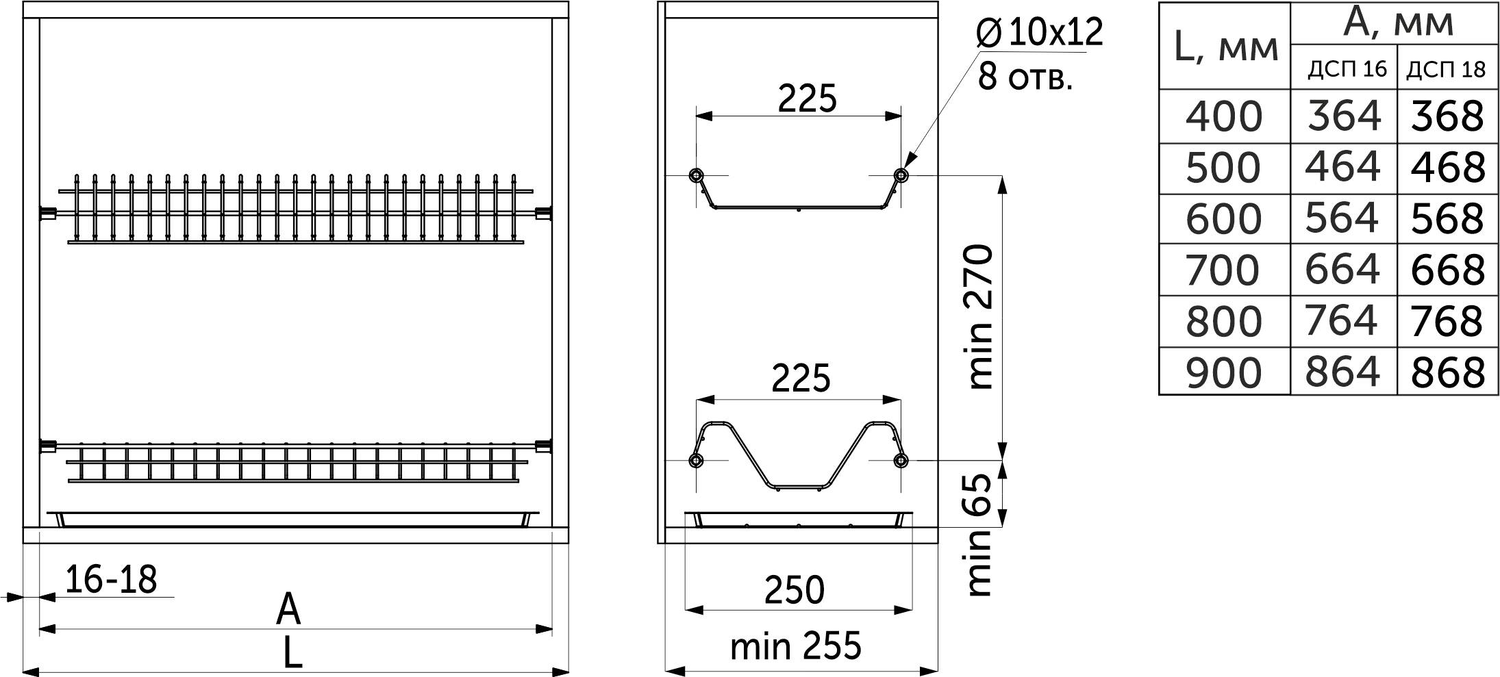 - подходит для установки в ящик как с ДСП 18 мм, так и с ДСП 16 мм,