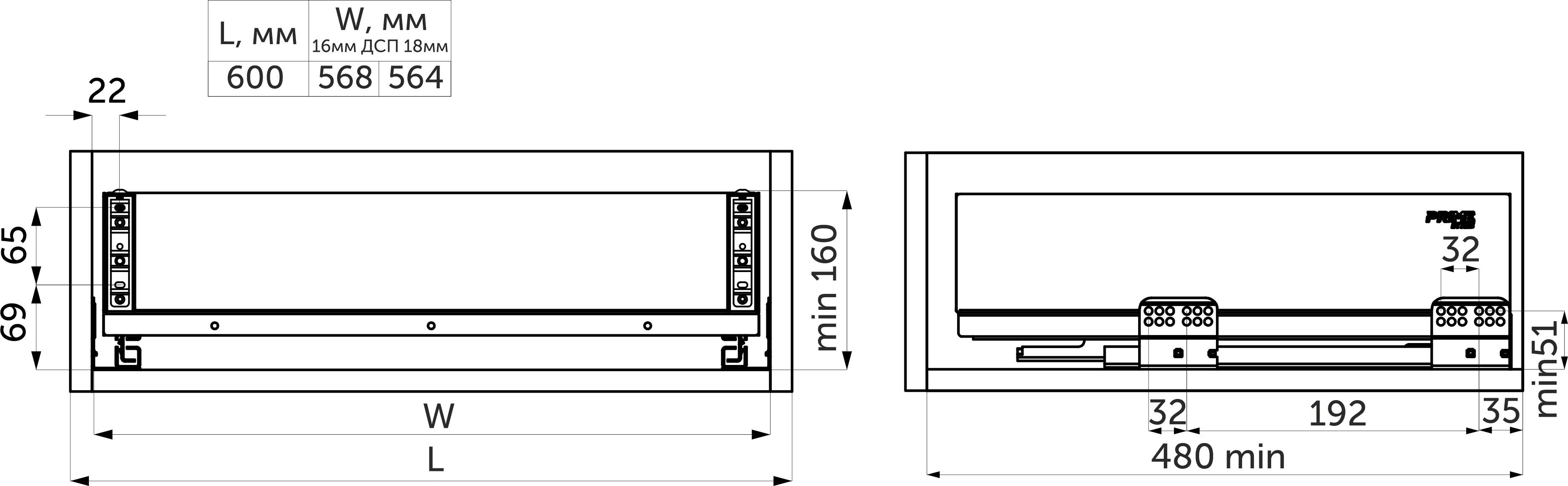 - сталь толщиной 1,3 мм, цельнолистовое дно,- крепление к фасаду с регулировкой в трех плоскостях (установка в ящик под выдвижной фасад),