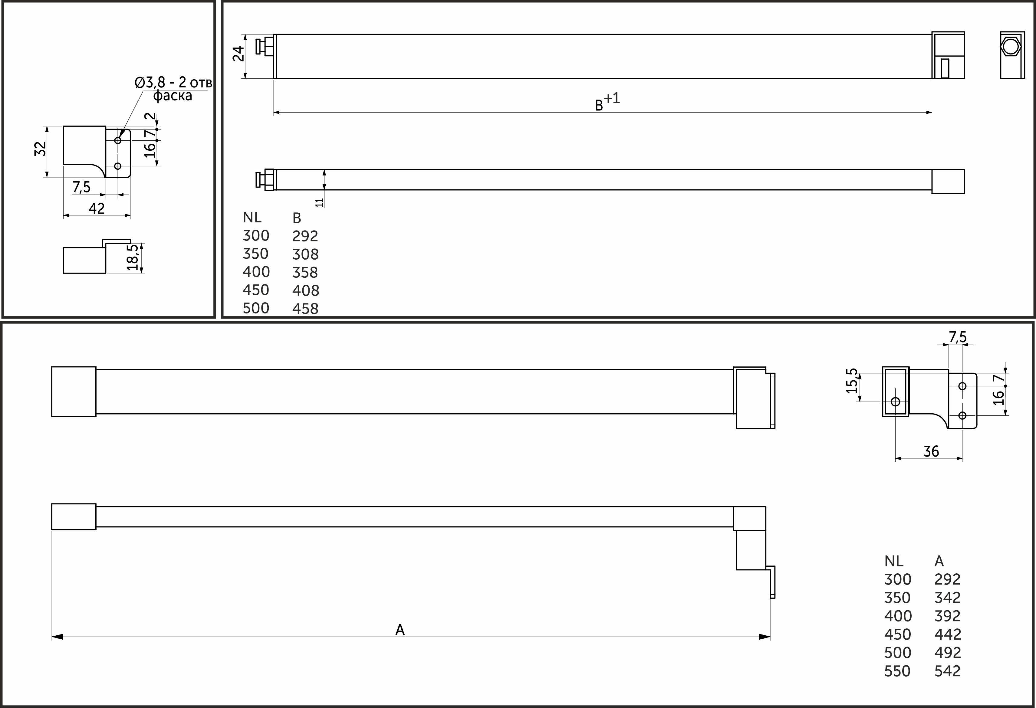 Прямоугольный продольный рейлинг предназначен для формирования выдвижного мебельного ящика любой желаемой высоты с прямыми боковинами.