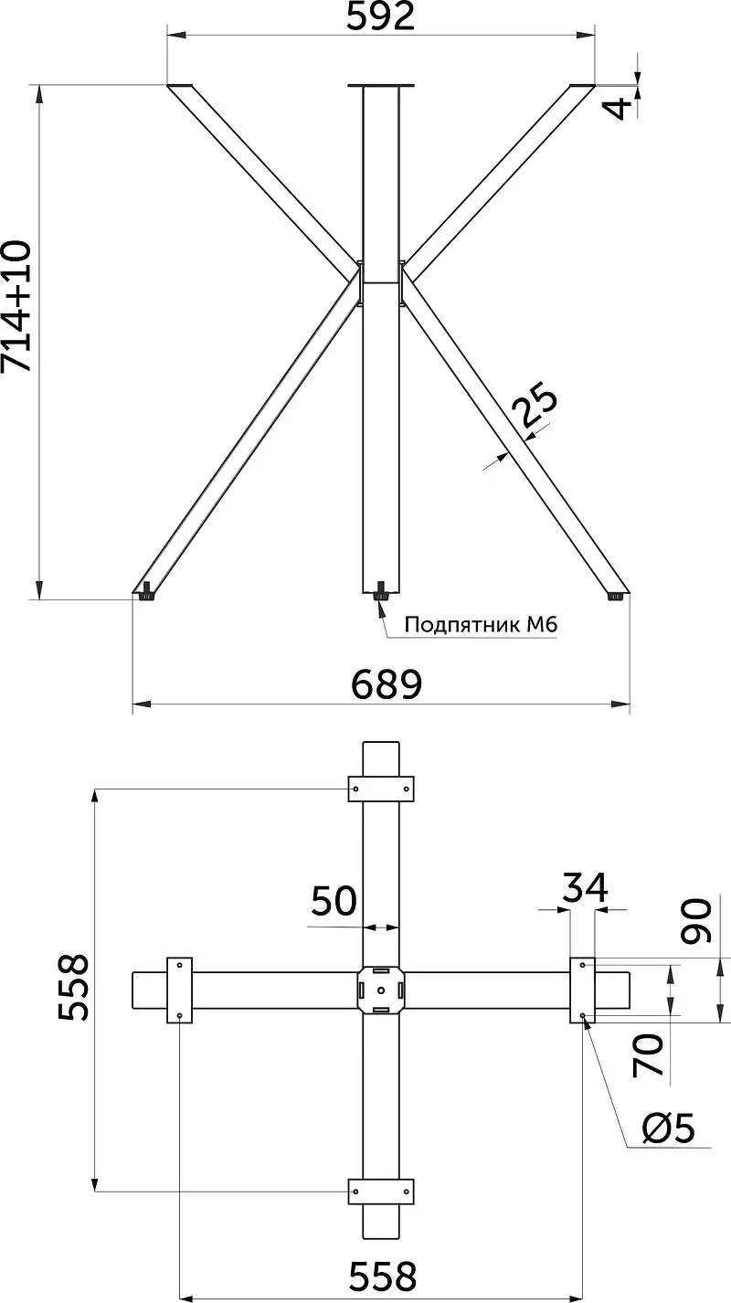 Высота подстолья: 714 мм + регулировка уровня (идет в комплекте) до 10 мм