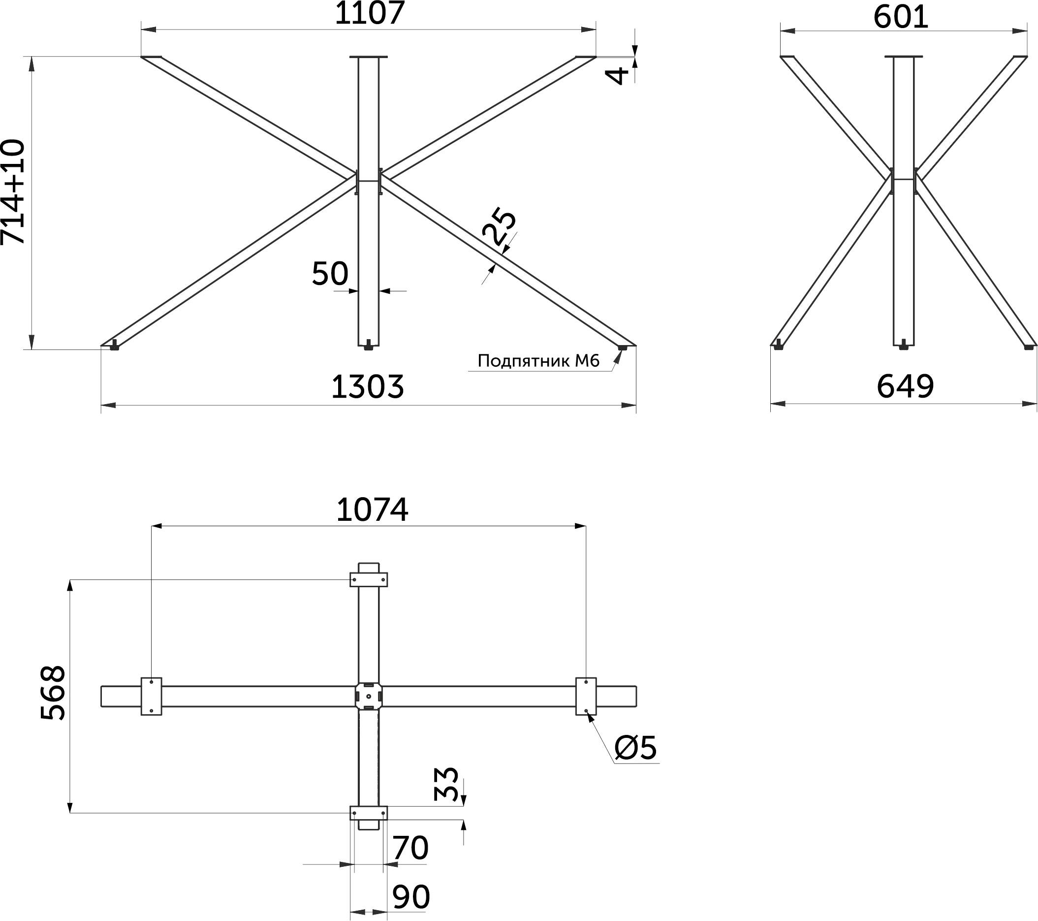 Высота подстолья: 714 мм + регулировка уровня (идет в комплекте) до 10 мм