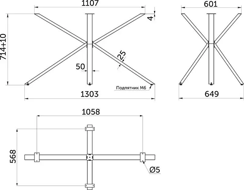 Высота подстолья: 714 мм + регулировка уровня (идет в комплекте) до 10 мм
