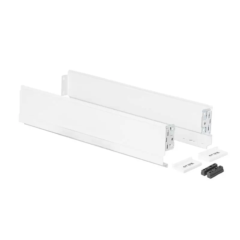 Благодаря толщине стенки в 1,4 мм, боковины выглядят минималистично, и позволяют еще больше увеличить площадь полезного пространства выдвижного ящика (по сравнению с системами выдвижения с традиционными боковинами).