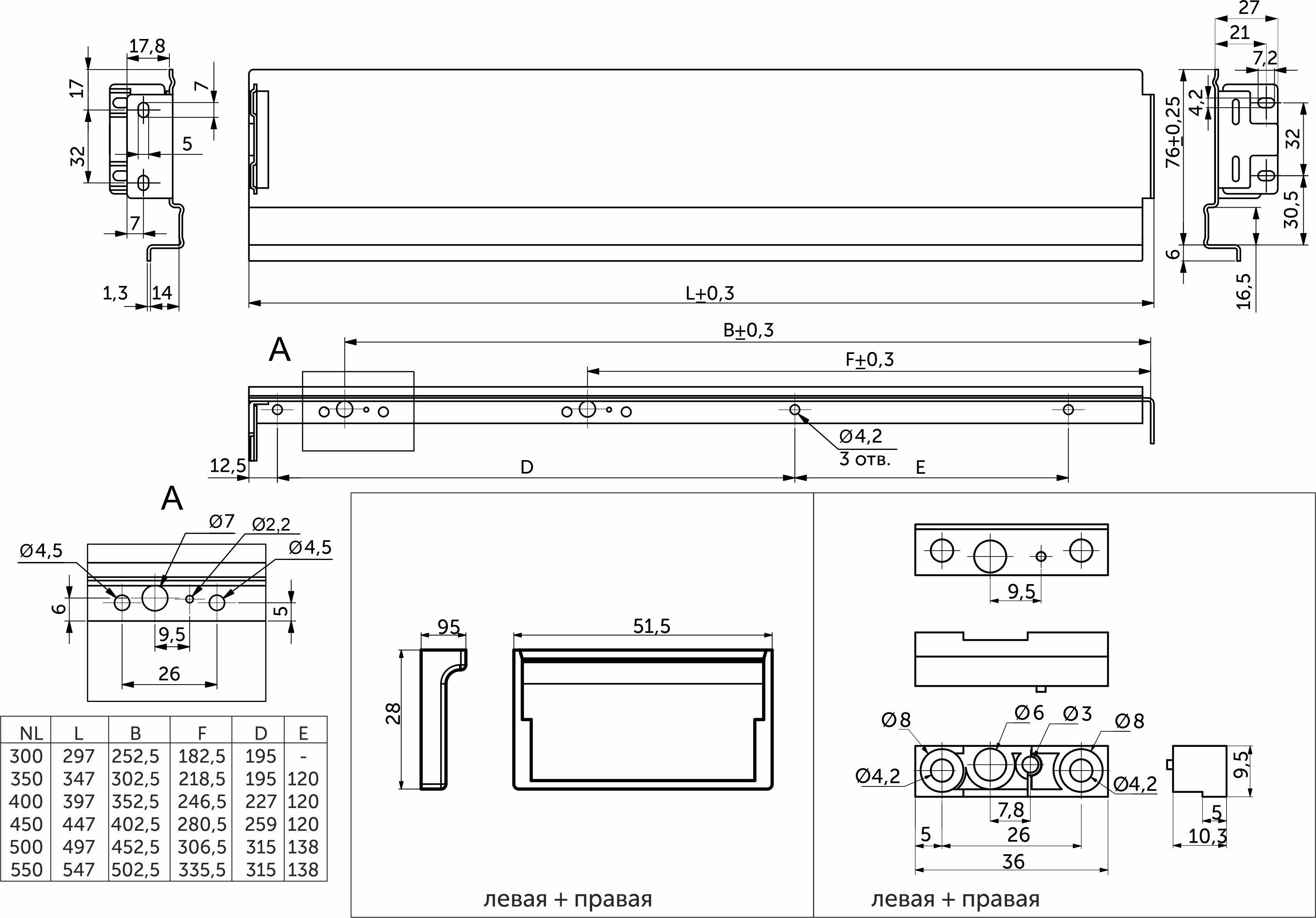 Комплект ультратонких боковин Qtype Evolution L-450 H=76 белый ДСП16мм