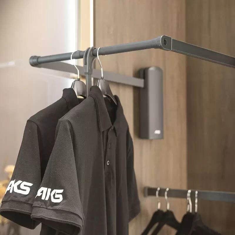 Пантограф VENTO помогает эффективно организовать хранение одежды в верхнем пространстве шкафа или гардеробной комнаты, максимально и с комфортом использовать труднодоступные зоны.