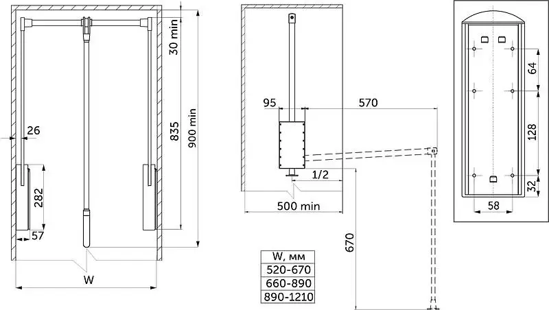 Возможность регулировки по ширине 660-890 мм позволяет устанавливать пантограф в корпус с нестандартной шириной.