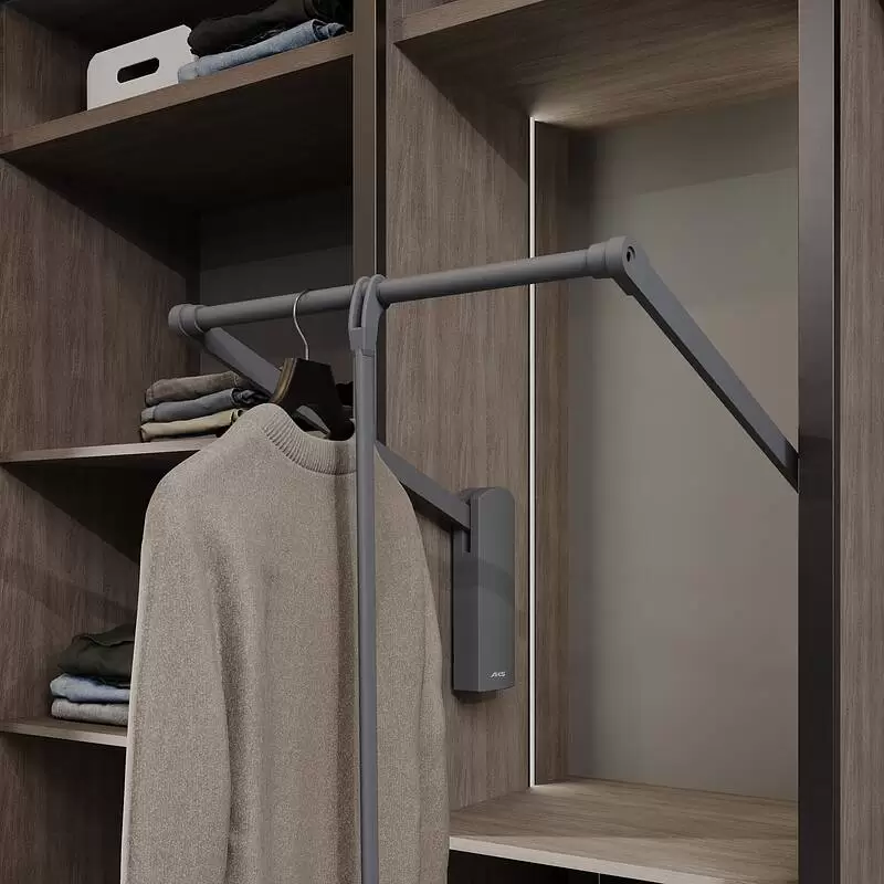 Пантограф VENTO помогает эффективно организовать хранение одежды в верхнем пространстве шкафа или гардеробной комнаты, максимально и с комфортом использовать труднодоступные зоны.
