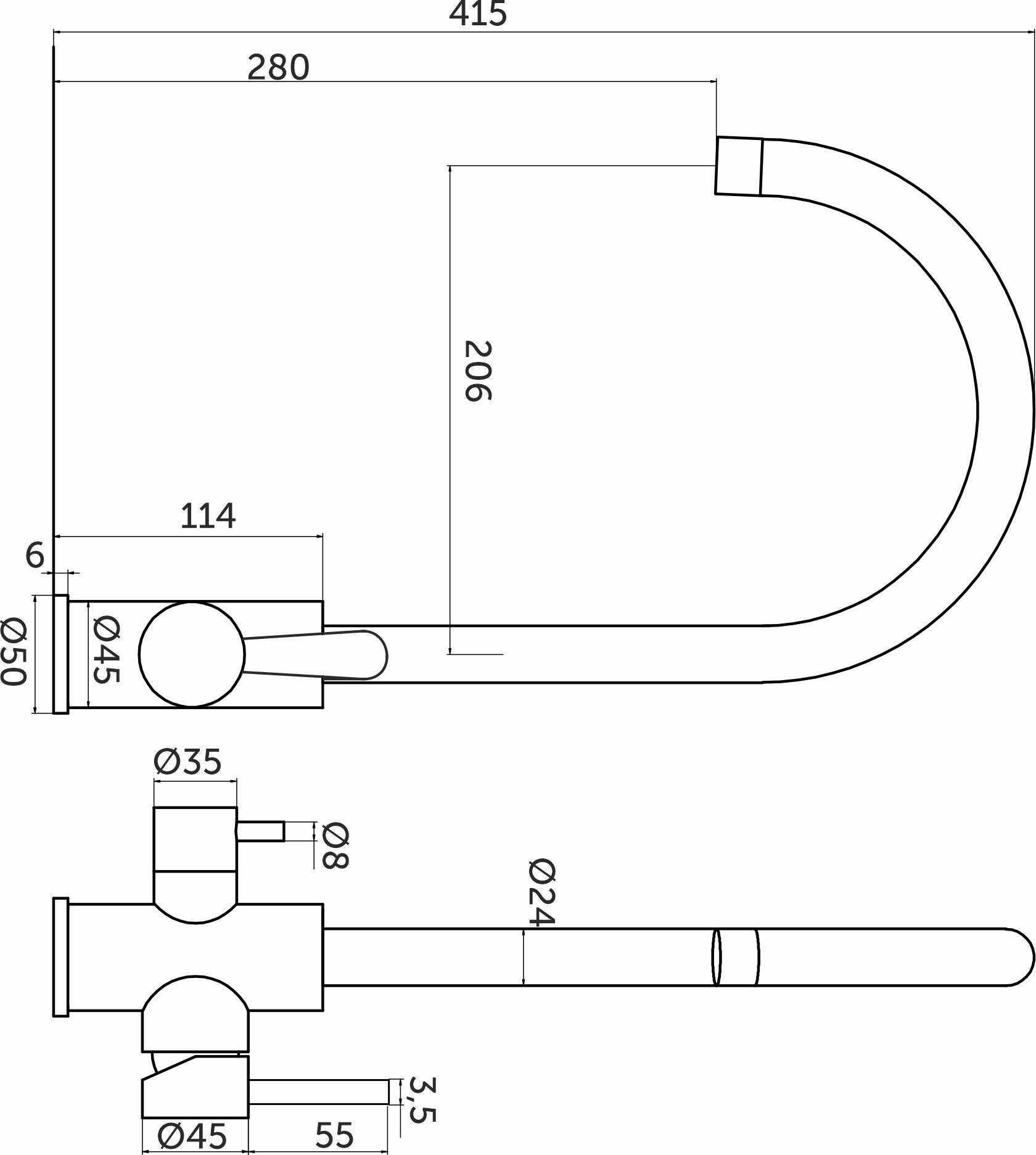 Универсальный смеситель для моек из нержавеющей стали и камня (в т.ч. и кварца)