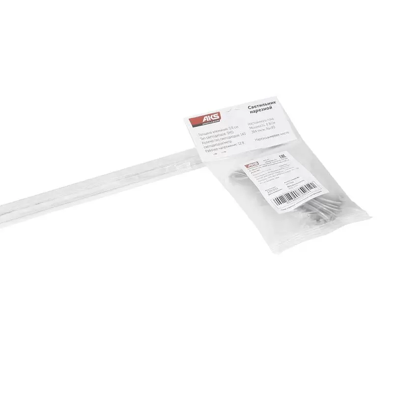 Светильник светодиодный, нарезной, 10*10мм, 8W/m, 12V, 6000K (холодный белый), 1,5м, алюминий, (в комплекте шнур, 2 заглушки, 2 держателя).
