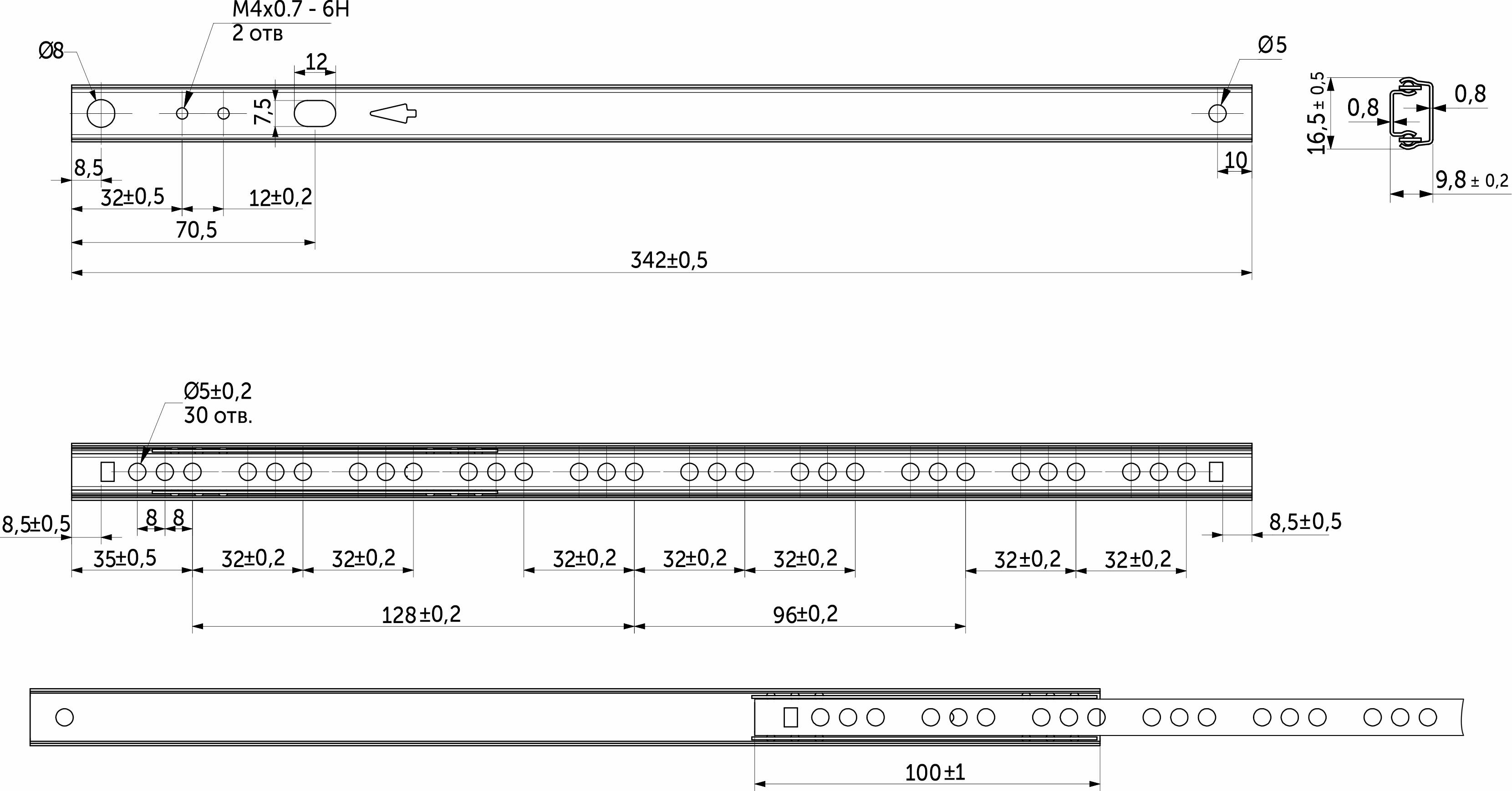 Комплект направляющих длиной 342 мм способен выдерживать нагрузку до 8 кг.