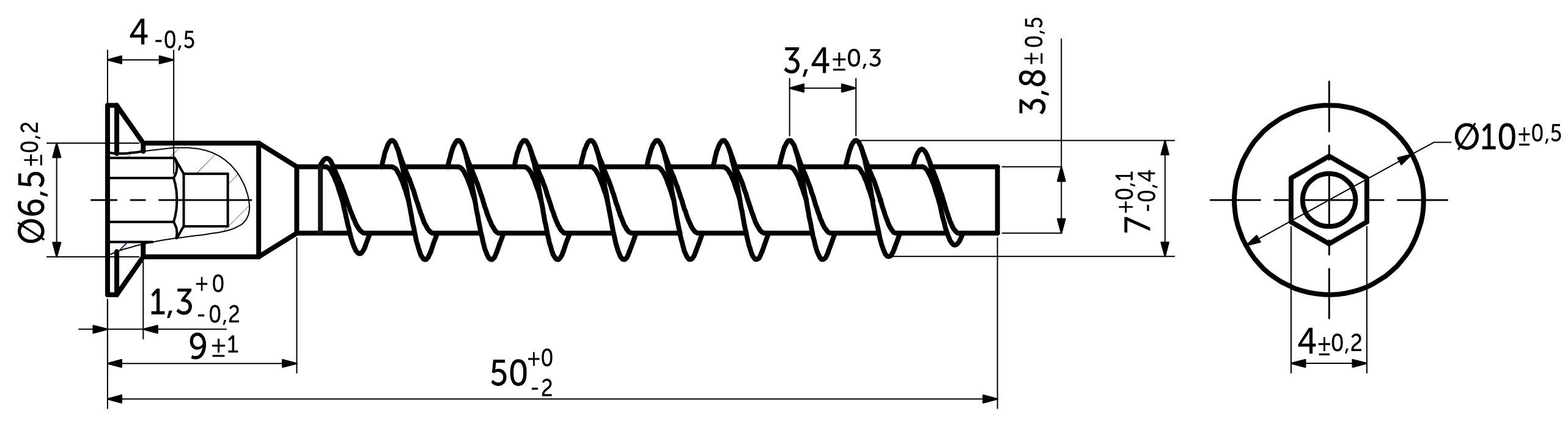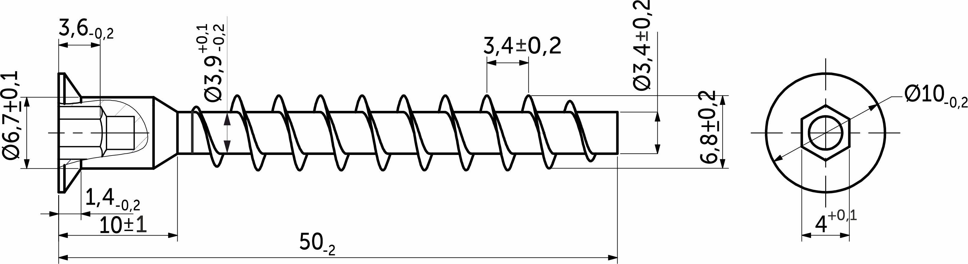 Наконечник плоский, головка потайная с внутренним шестигранником.