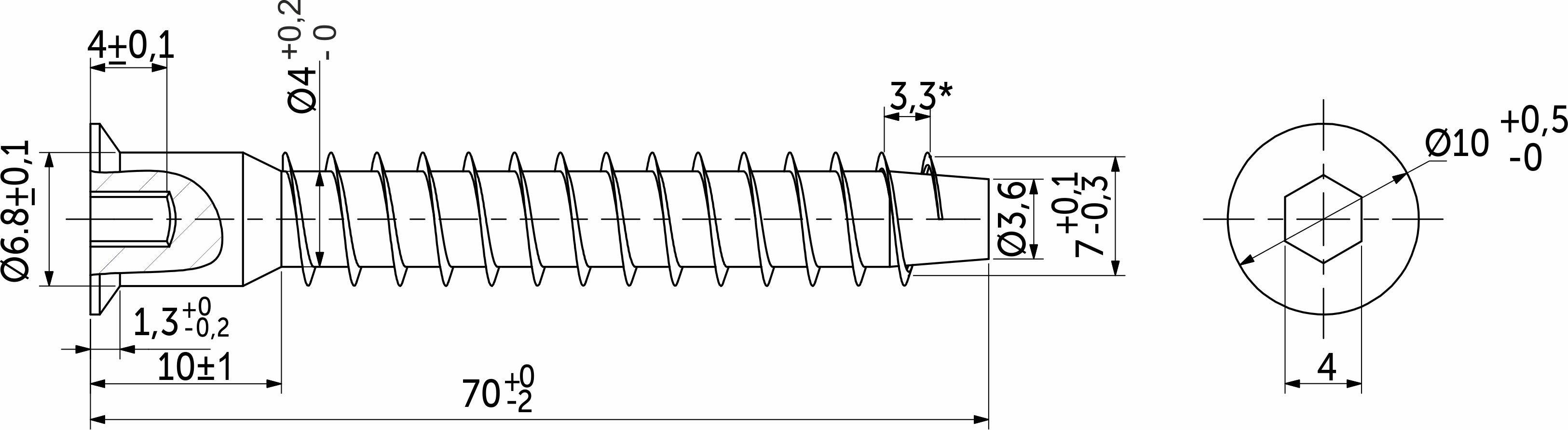 Наконечник плоский, головка потайная с внутренним шестигранником.