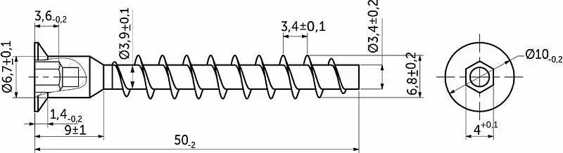 Наконечник плоский, головка потайная с внутренним шестигранником.