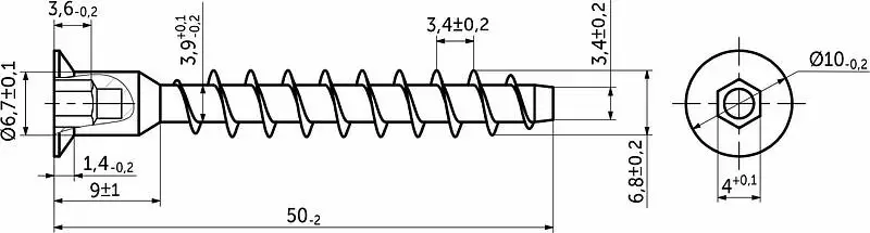 Наконечник плоский, головка потайная с внутренним шестигранником.