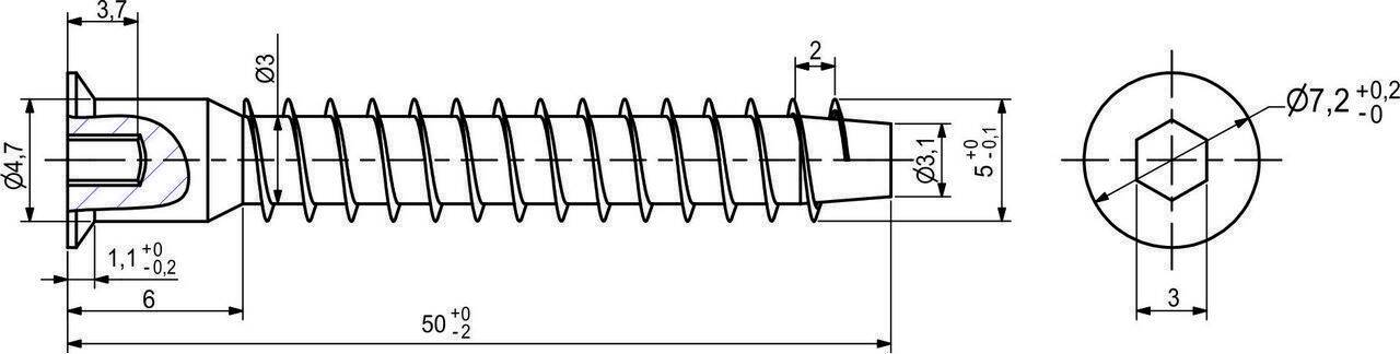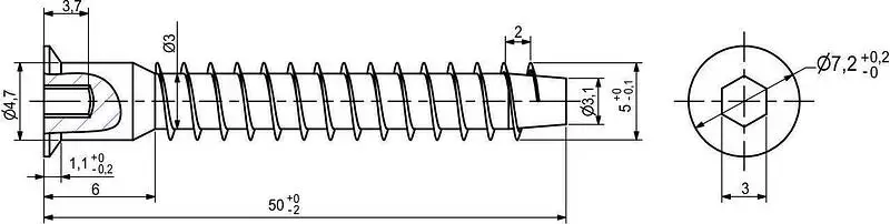 Наконечник плоский, головка потайная с внутренним шестигранником.