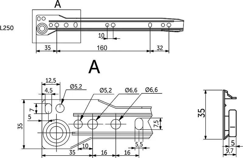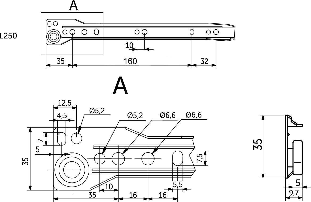 Направляющие роликовые для выдвижных ящиков мебели изготовлены из холоднокатаной стали. Толщина - 0,9 мм с учетом покраски. Длина - 250 мм. Допустимая нагрузка: 12 кг.
