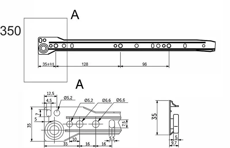 Направляющие роликовые для выдвижных ящиков мебели изготовлены из холоднокатаной стали. Толщина - 0,8 мм с учетом покраски. Длина - 350 мм. Допустимая нагрузка: 10 кг.