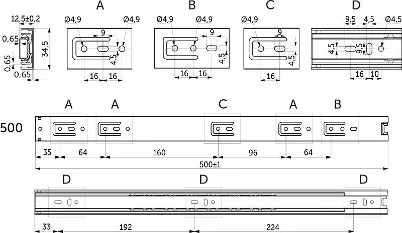Направляющая для мебели GRIDLI изготовлена из холоднокатаной стали толщиной 0,65*0,65*0,65 мм, имеет резиновый фиксатор от самопроизвольного открытия. Фактическая высота данной направляющей 35 мм, а её длина – 500 мм.