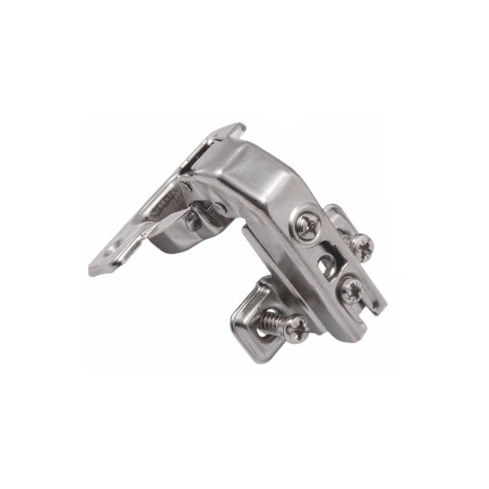 Петля угловая с системой надвижного монтажа slide on, с чашкой 35 мм. Межцентровое расстояние в чашке 45 мм. Петля для мебели изготовлена из высокопрочной холоднокатаной стали. Имеет встроенный демпфер, что обеспечивает плавность закрытия петли. Угол открывания 100 градусов. Устанавливается преимущественно под корпус с узкой фальшпанелью размером не менее 26 мм.