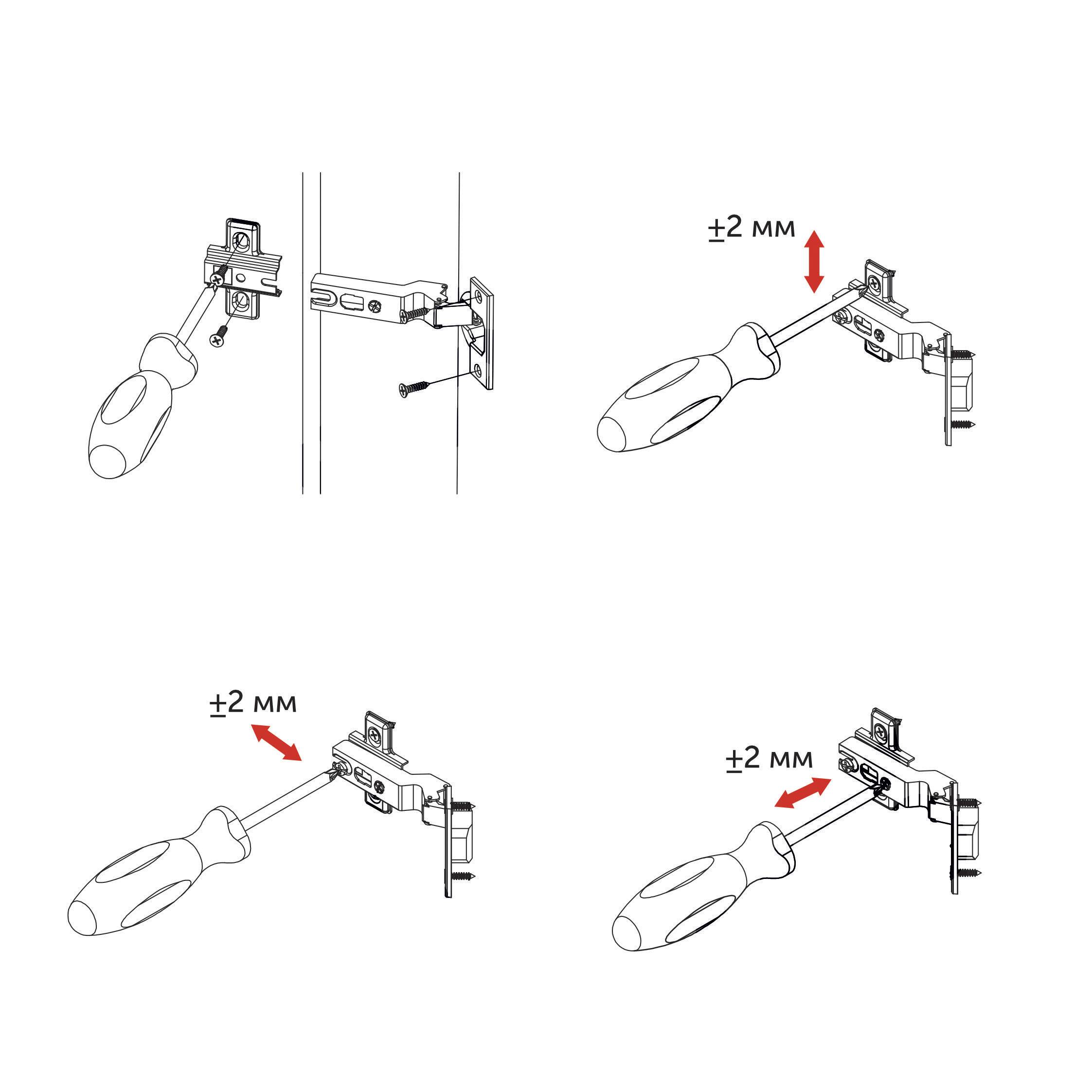 Петля угловая с системой Slide-on (надвижной монтаж) и чашкой 35 мм. Межцентровое расстояние в чашке 45 мм. Петля мебельная изготовлена из высокопрочной холоднокатаной стали. Угол открывания 100 градусов. Угол установки -45 гр. Устанавливается преимущественно под скошенные фасады угловых ящиков. Высота ответной планки Н=2 мм.