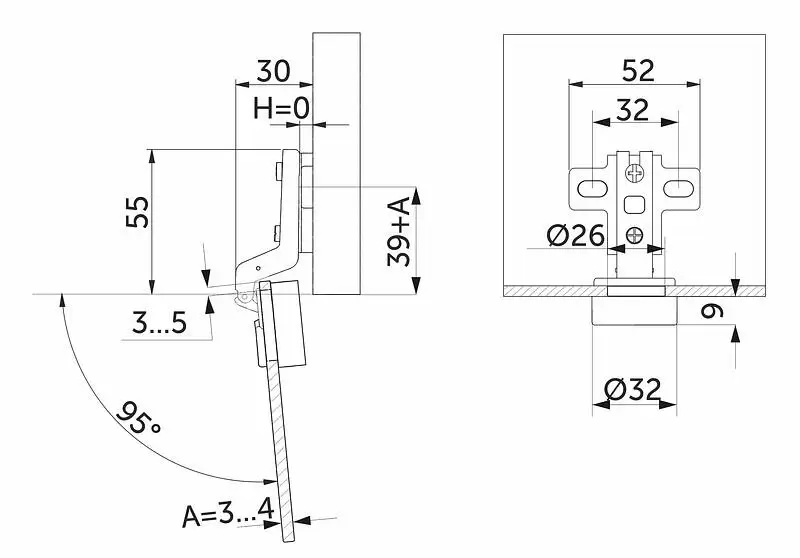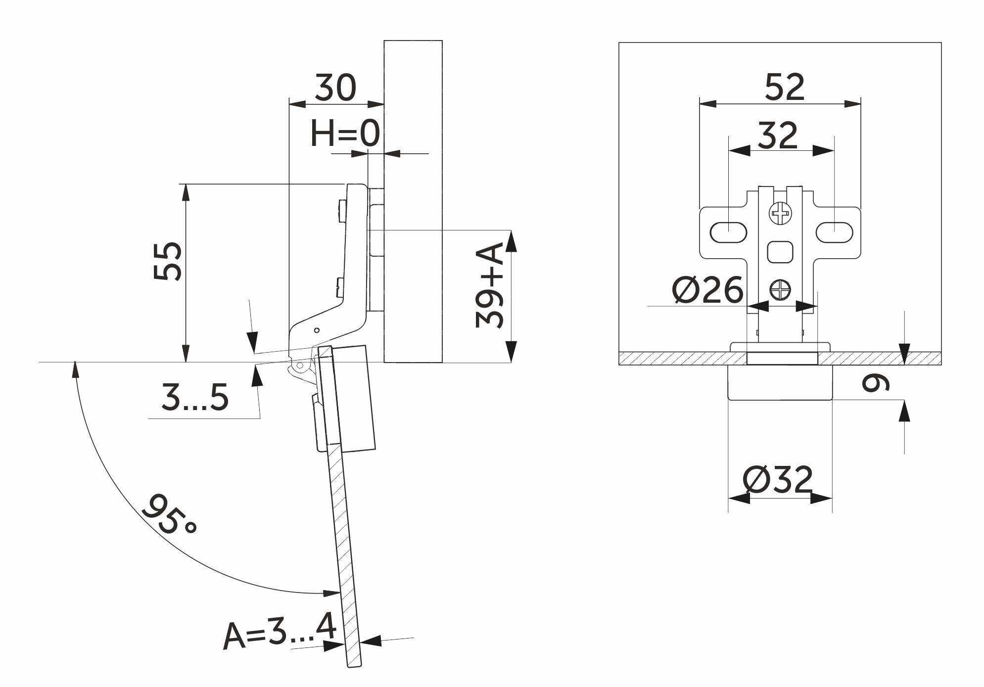 Петля внутренняя для стекла выполнена из холоднокатаной стали. Имеет механизм надвижного монтажа Slide-on и регулировочный винт на 10 мм хода резьбы. Чашка 26 мм. Петля предназначена для установки в фасад из стекла (толщина 3-4 мм), с прорезанием стекла под диаметр 26 мм с отступом от края в 5мм. В комплекте с заглушкой декоративной с хром покрытием.