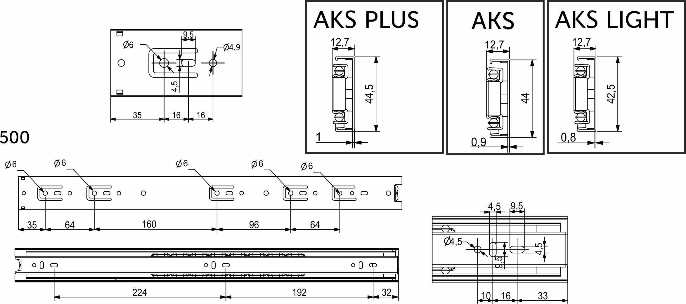 Классическая направляющая с шарикоподшипниковым механизмом и телескопической структурой, обеспечивает полное выдвижение. Высота 45 мм. Нагрузка 35 кг. Изготовлена из холоднокатаной стали. Резиновый фиксатор от самопроизвольного открытия. Толщины 1,0*1,0*1,2. Запас прочности - 80000 циклов.