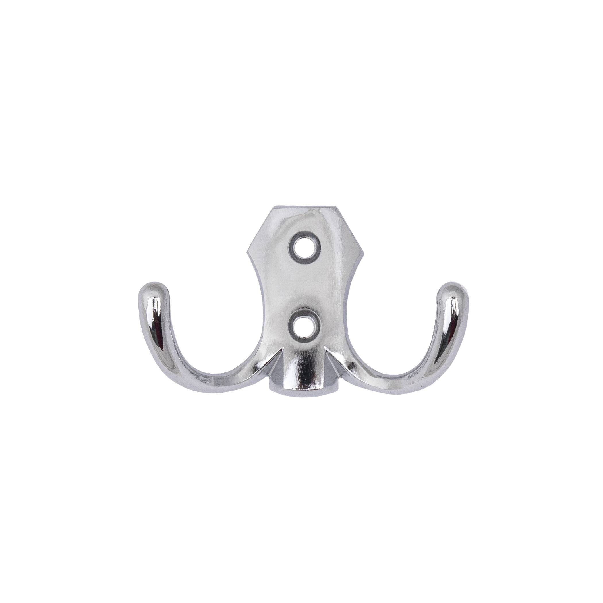 Двухрожковый металлический настенный крючок. Цвет хром. Материал - цинк-алюминий.