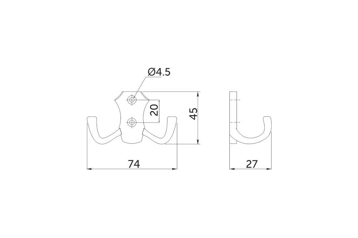 Крючок меб. двухрожковый мет. WP89 сатин GRIDLI