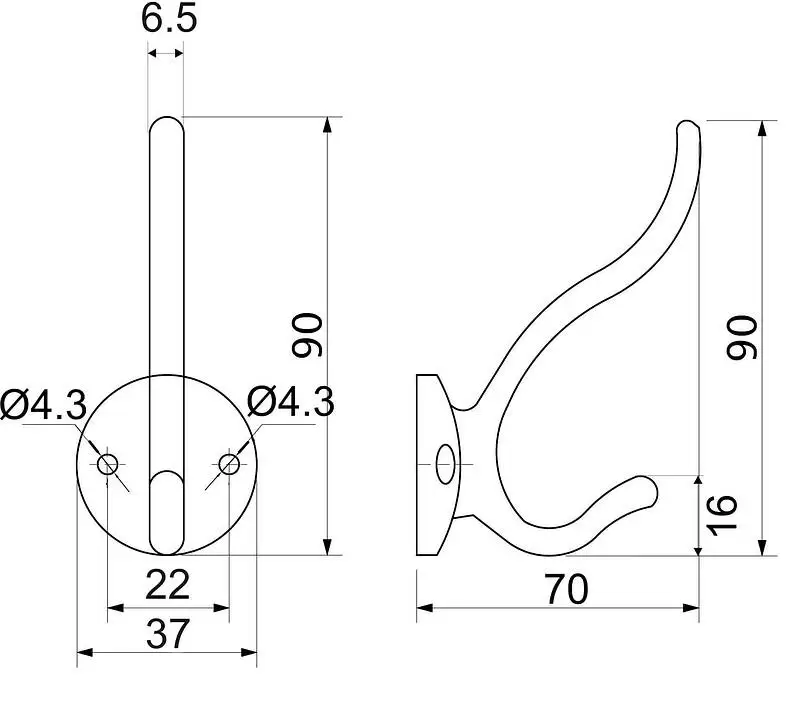 Крючок меб. двухрожковый мет. W009 хром AKS