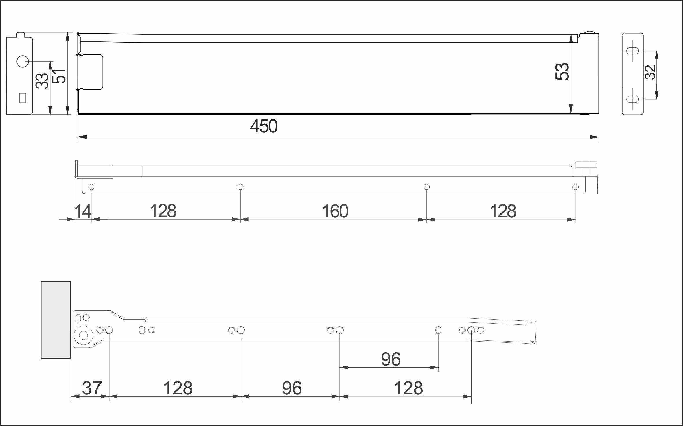Цельнометаллический выдвижной ящик, построен на базе роликовых направляющих. Может дополнительно комплектоваться доводчиком. Нагрузка до 25 кг. Используется толщина 1 мм после покраски. Отсутствуют регулировки по плоскостям.