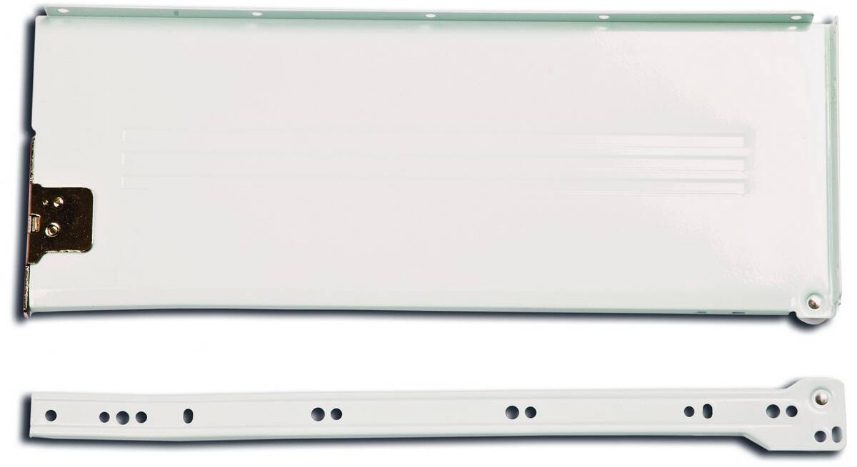 Цельнометаллический выдвижной ящик, построен на базе роликовых направляющих. Имеет две металлические боковины. Имеет неполное выдвижение. Может дополнительно комплектоваться доводчиком. Нагрузка до 25 кг. Используется толщина 1 мм после покраски. Отсутствуют регулировки по плоскостям.