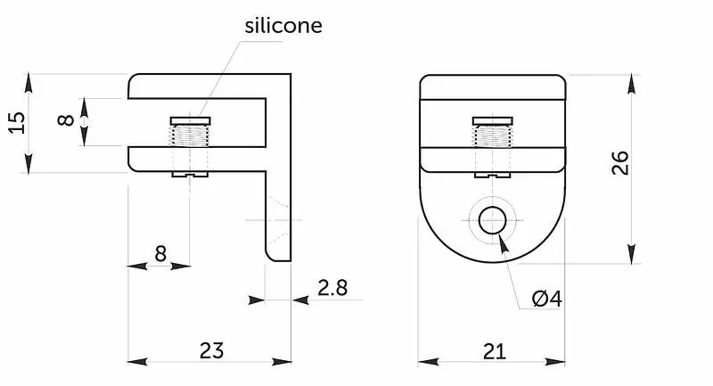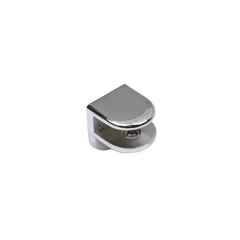 Полкодержатель для стеклянных полок металлический. Используется для закрепления и удержания полок мебели. Подходит для полок толщиной 8мм. Материал - цинк-алюминий и пластик. Цвет - хром. Упаковка - пакет ПЭ запаянный.