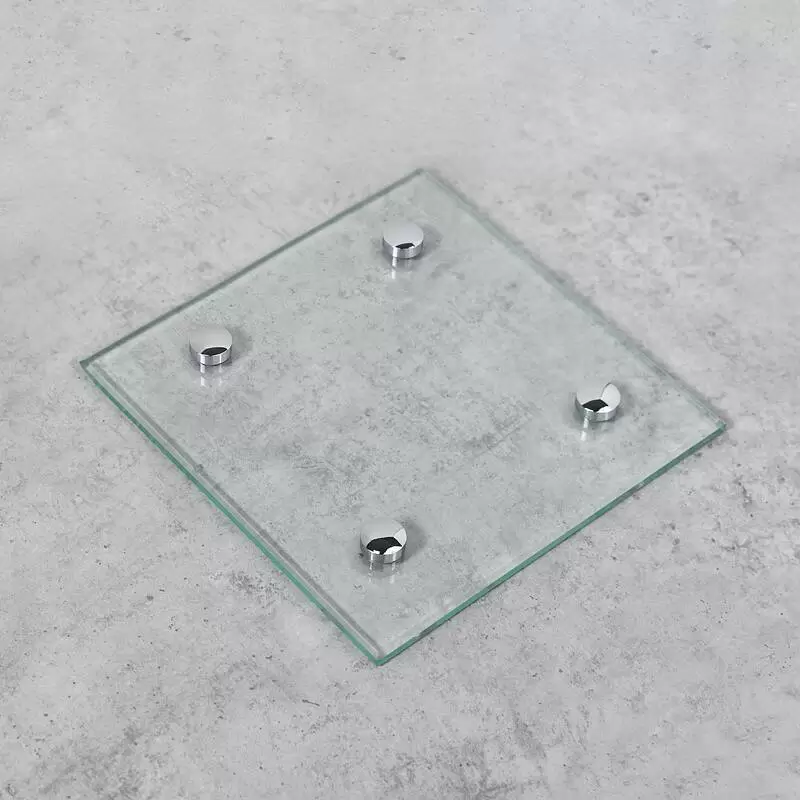 Крепление зеркала AJ04AL используется для монтажа зеркал/стекол/скиналей к ДСП/стене методом сверления. Монтаж таким способом является более надежным и долговечным. При необходимости можно будет осуществить демонтаж стекла, предварительно открутив декоративную заглушку и выкрутив саморез. Комплектуется саморезами и силиконовыми уплотнителями. При необходимости монтажа к стене рекомендуется приобрести дюбеля в соответствии с диаметром используемого самореза. Рекомендуемый диаметр отверстия для монтажа – 4 мм.