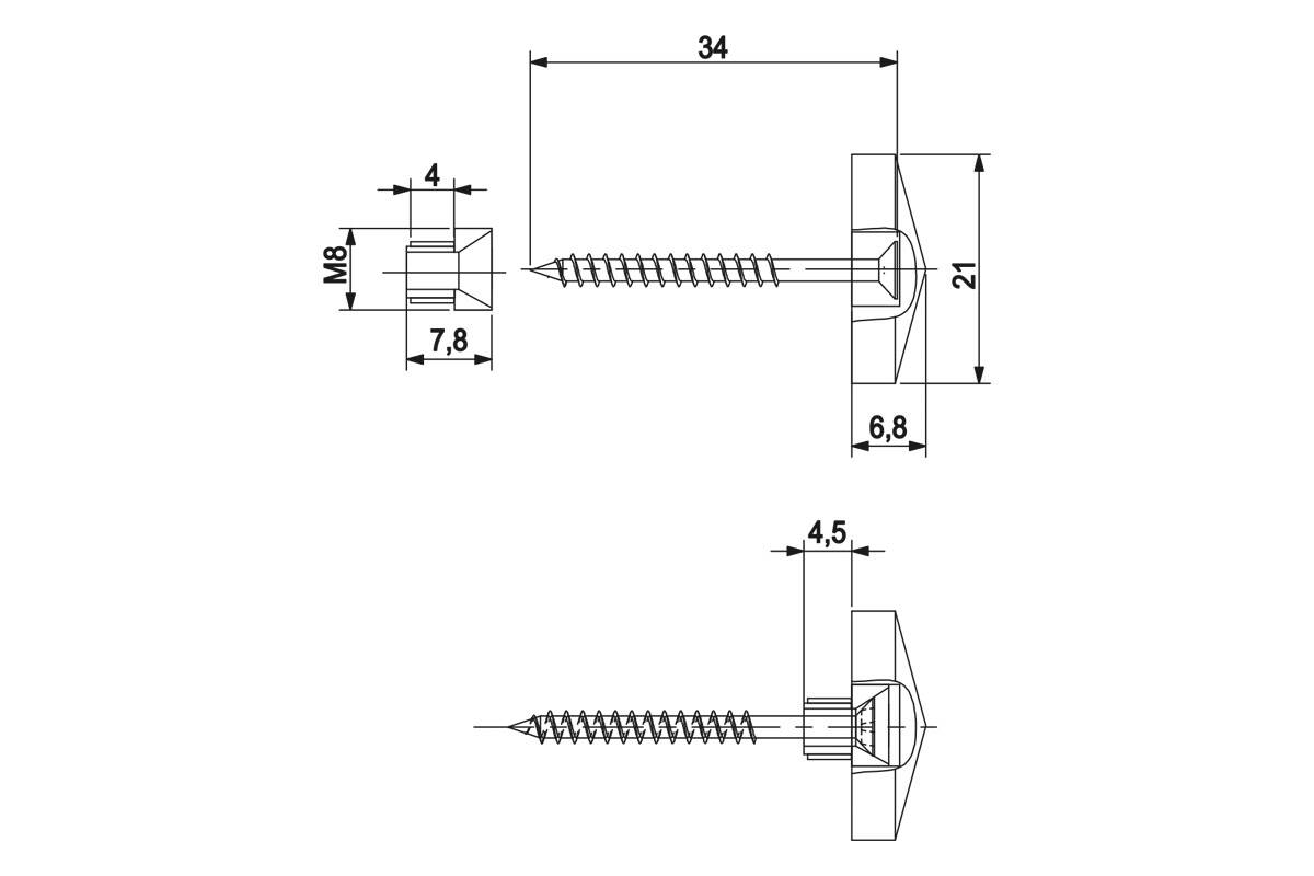 Кнопка конус используется для монтажа зеркал/стекол/скиналей к ДСП/стене методом сверления. Монтаж таким способом является более надежным и долговечным. При необходимости можно будет осуществить демонтаж стекла, предварительно открутив декоративную заглушку и выкрутив саморез. Комплектуется саморезом, дюбелем, латунной и силиконовой втулками.