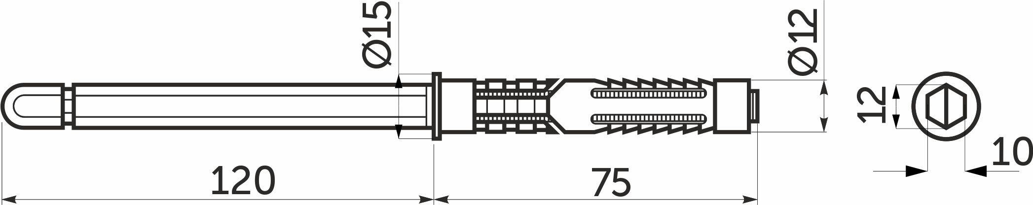 Полкодержатель врезной. Металлический. Материал внутри - сталь, снаружи - пластик. Цвет - коричневый. Максимальная нагрузка 15кг. Диаметр - 12мм, длина - 120мм.